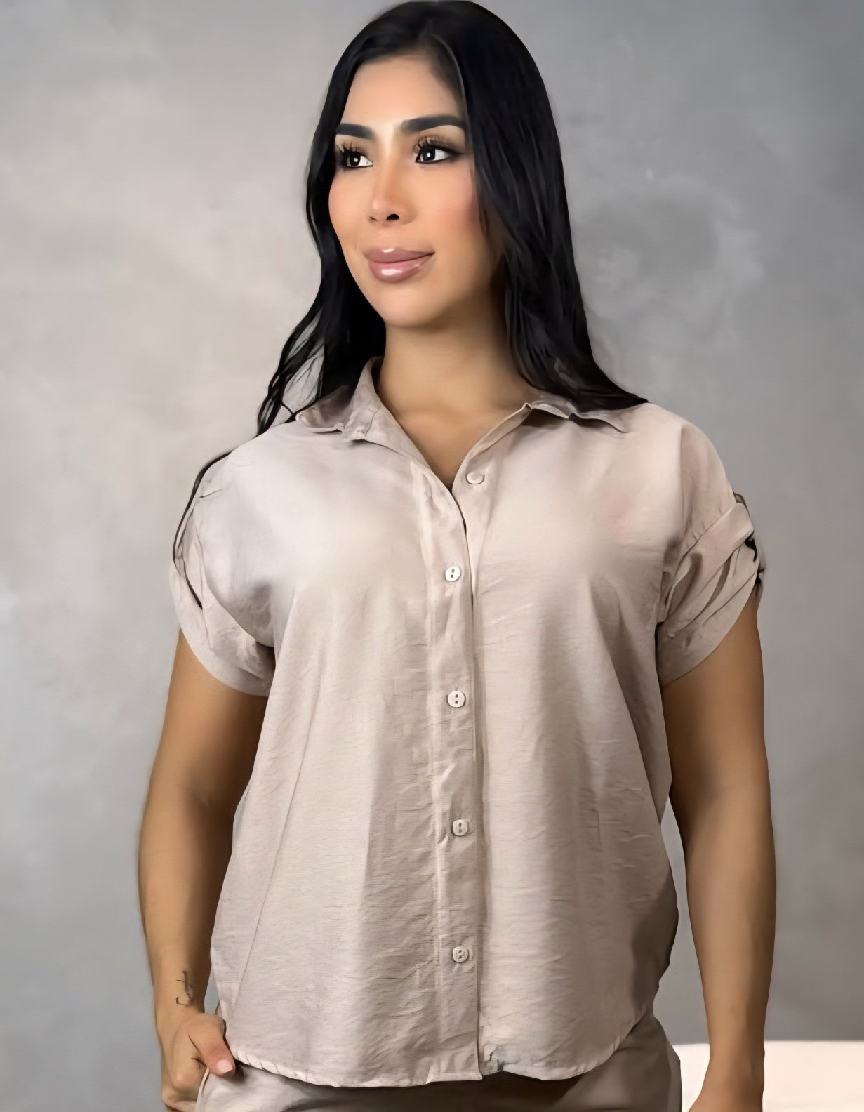 Hermosa blusa manga corta de estilo casual. Está confeccionada en una tela suave y cómoda, perfecta para cualquier ocasión. Ideal para quienes buscan lucir bien sin sacrificar la comodidad. ¡Anímate a probarla y siente la diferencia!