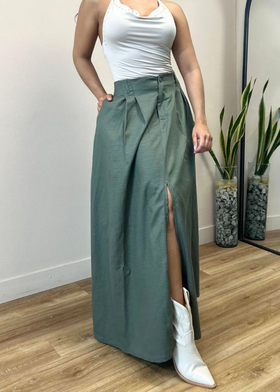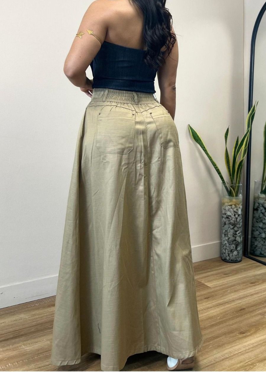 Falda larga con botón forrado