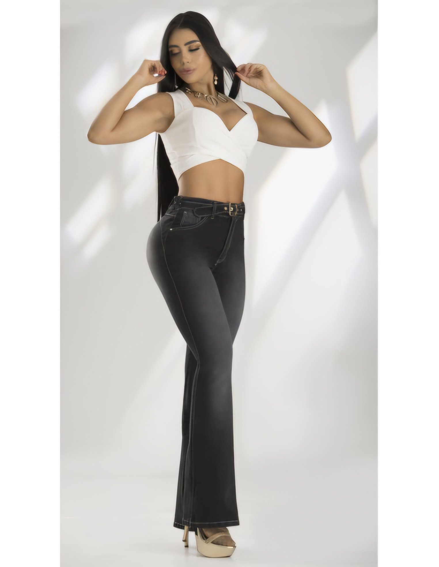 Fabricados en Colombia, estos jeans están ceñidos al cuerpo, brindando un ajuste perfecto que te hará sentir segura y fabulosa en cualquier ocasión. Ya sea para un día de compras o una salida con amigos, estos jeans levanta cola acampanado son la elección ideal.