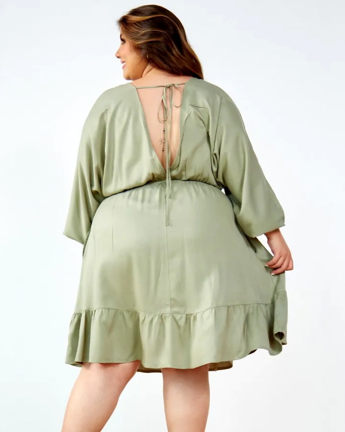 ¡Descubre el increíble vestido blanco corto talla grande manga larga de Le Greeny!