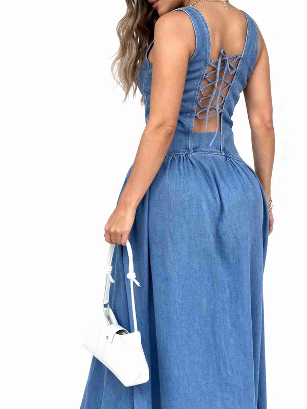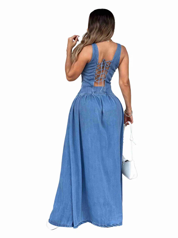 Vestido largo en tela dril stretch y caída elegante para uso diario.